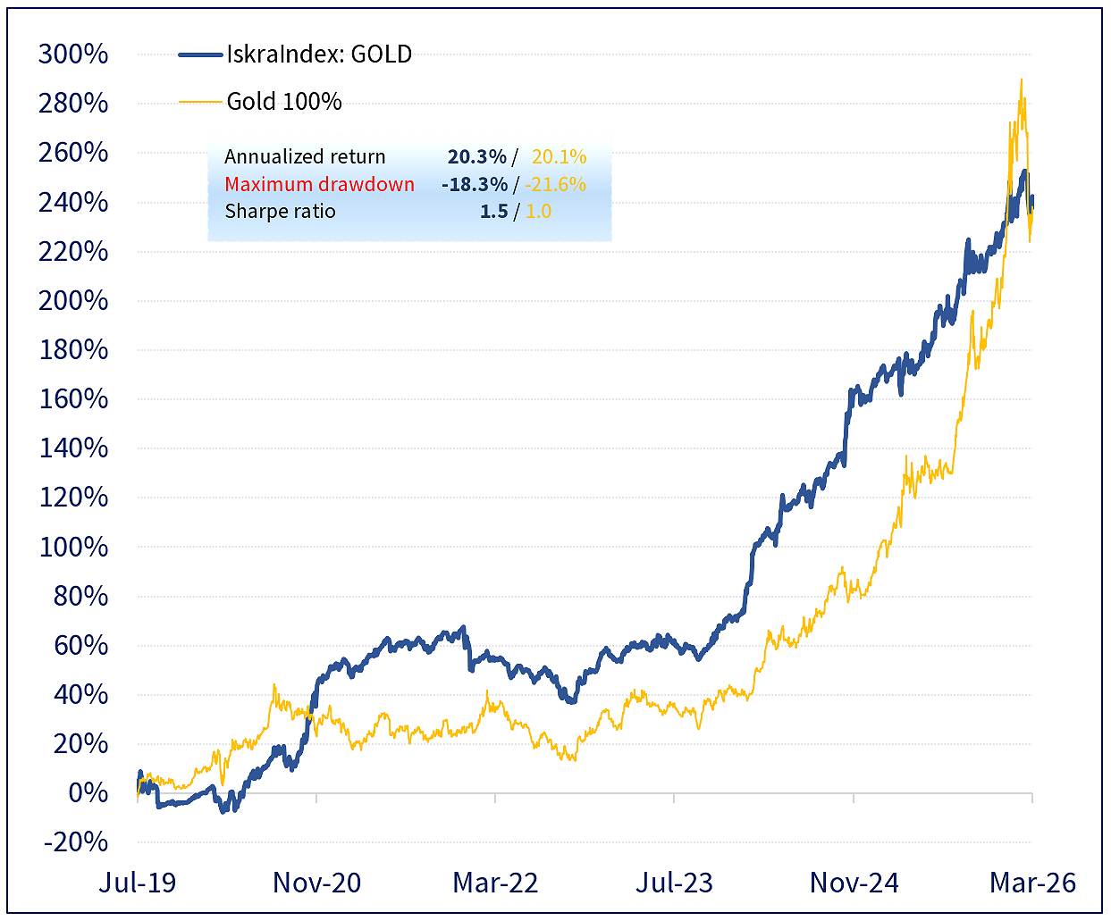 The Idea line portfolios are more suited to risk seeking investors, although first two of them have drawdown levels more specific to balanced (moderate) portfolios. This is because including an individual idea with a fixed (even if minimal) weight in the portfolio introduces a specific risk associated with a non-index instrument, generally increasing the portfolio's overall risk.